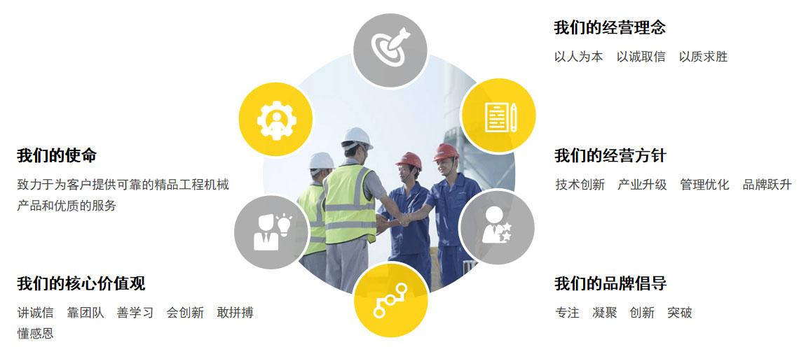 以員工、客戶、合作伙伴為晉工發(fā)展之根本,坦誠(chéng)相待、互信互利,實(shí)現(xiàn)與多方的和諧共生、共贏。在不斷發(fā)展中自主創(chuàng)新,以客戶的需求為晉工發(fā)展創(chuàng)新的源動(dòng)力,不斷推出性能優(yōu)良、品質(zhì)可靠的產(chǎn)品來(lái)贏得市場(chǎng),也贏得更多客戶的信賴。做精品,負(fù)責(zé)任,與第三世界國(guó)家的建設(shè)同步。做優(yōu)秀的民族品牌。